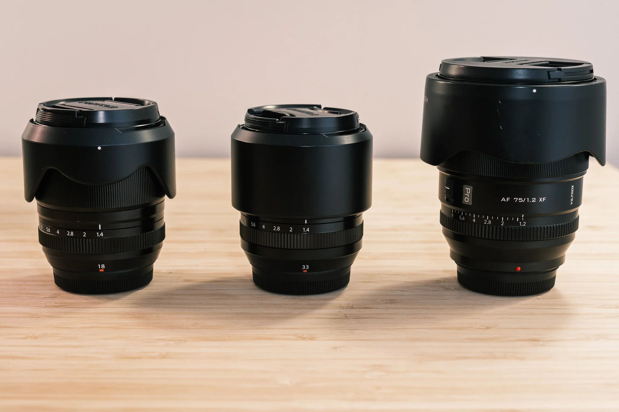 • All the lenses are Fuji first party, with the zooms being “red badge” zooms. They all carry a similar design language with physical aperture rings and nice smooth focus and zoom rings. They are all satisfying lenses to use.